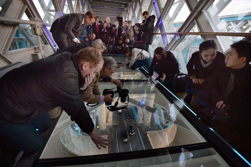 Gisteren is het oostelijke deel van de glazen vloer in de Tower Bridge open gegaan voor publiek. De glazen vloer waarover het publiek kan lopen bevindt zich op circa 45 meter hoogte. De jongste attractie van de beroemdste brug van Groot-Brittannië geeft bezoekers een adembenemend zicht op de brug, de brugliften de onder de brug lopende weg en de Theems. De glaspanelen zijn opgebouwd uit zes lagen gelamineerd gehard glas, 530 kilogram per paneel, gevat in een 1000 kilogram wegende carbon constructie. De in de brug aangebrachte glazen vloer bestaat uit twee delen van 11 x 1,8 meter. De nieuwe attractie heeft een miljoen pond gekost en maakt deel uit van de in 1982 geopende Tower Bridge Experience die jaarlijks ongeveer 600.000 bezoekers trekt. De glazen vloer zal naar verwachting leiden tot een toename van het aantal bezoekers. Het westelijk deel was reeds op 18 november in gebruik genomen.