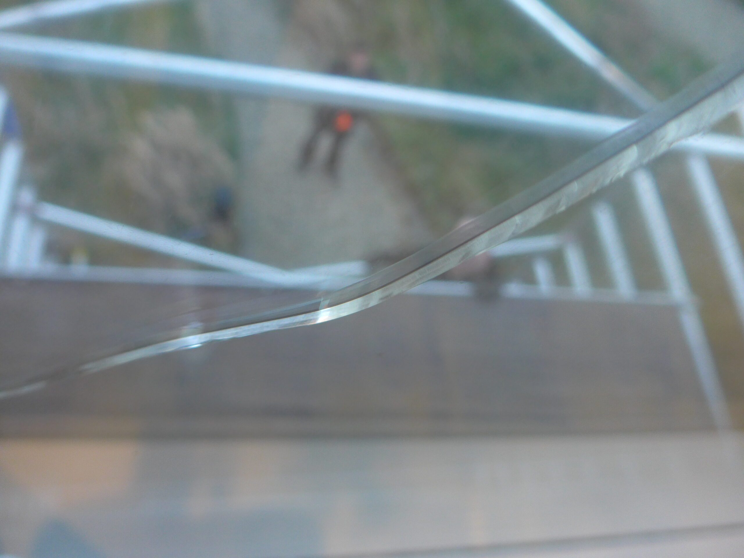 Na het uitnemen van de ruit is duidelijk zichtbaar dat de breukoorsprong op de kopse kant van het glas een breuklijn heeft die volledig haaks is ten opzichte van de snijrand van het glas. De glasbreuk begint in het hart van de randbeschadiging. Een breuklijn loodrecht op de snijrand van het glas duidt op te hoge thermische spanningen in het glas, zoals bij een thermische breuk het geval is. Echter de rand van het glas was dus al verzwakt door de randbeschadiging en had niet meer zijn oorspronkelijke sterkte om voldoende weerstand te kunnen bieden tegen de optredende thermisch spanningen van het zonwerend glas, met glasbreuk als gevolg.