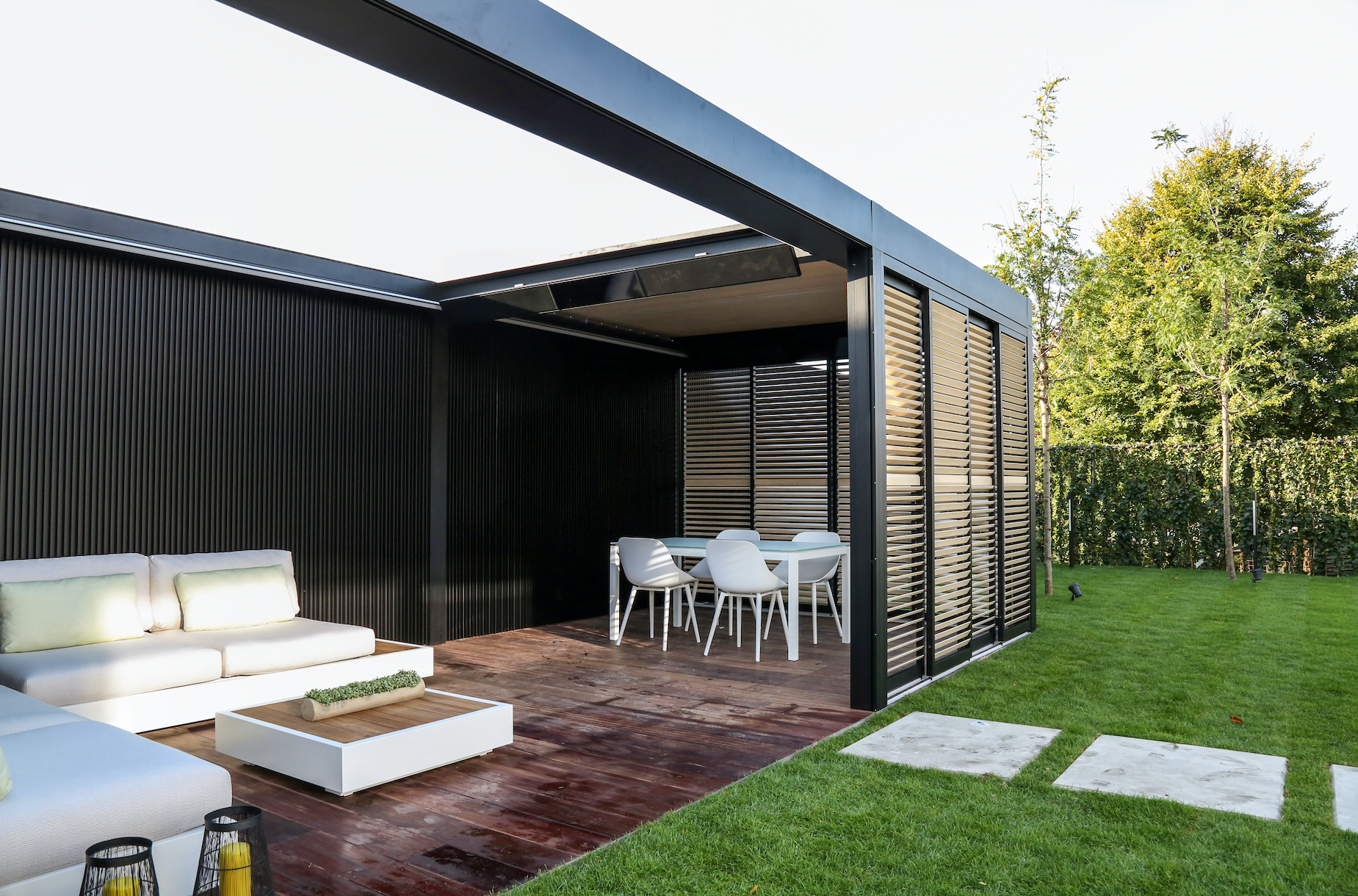 De woning is beglaasd met Ultra one van Sprimoglas (Ug 1,0 W/m2K). Elk glasvolume, zowel in het dak als de gevels, is voorzien van buitendoek zonwering. ‘Zo behoud je optimale transparantie’, zegt Renson, ‘en kan je de zon op een dynamische manier beheersen door de screens neer te laten en de zon tegen te houden nog voor die het glas bereikt in de zomer. Door de screens op te halen in de winter kun je toch optimaal van de zonnewinsten genieten om op stookkosten te besparen. Daarnaast zijn ook vaste luifels gebruikt als zonwering boven de ramen.’ In het huis is onder meer een E+ ventilatiesysteem toegepast dat de warmte recupereert uit de afgevoerde ventilatielucht voor de productie van warm water en lage temperatuurverwarming. Verder zijn PV-panelen op het dak en raamroosters voor intensieve ventilatie toegepast. Renson: ‘Wat oververhitting betreft, is in deze woning in de praktijk te zien hoe een combinatie van ventilatie, (buiten)doekzonwering en ventilatieve koeling ervoor zorgen dat de binnentemperaturen ook op warme dagen aangenaam blijven. Door de grote raamroosters op warme dagen ’s nachts open te zetten haal je grote volumes koele nachtlucht binnen. Op een vooraf ingestelde temperatuur gaan ook de dakvensters open zodat een schouweffect gecreëerd wordt waardoor de woning ’s nachts kan afkoelen.’