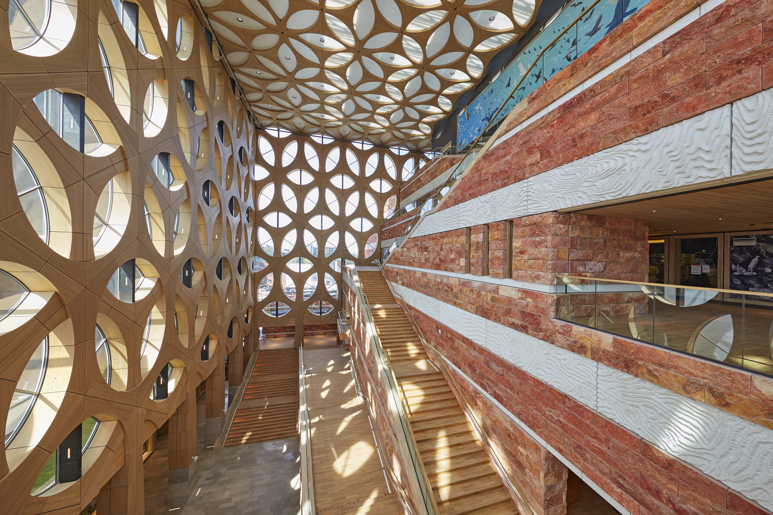 TBI-onderneming J.P. van Eesteren heeft het nieuwe Naturalis Biodiversity Center officieel opgeleverd. Centraal in het ontwerp van de nieuwbouw is de 40 meter hoge glaskroongevel van Neutelings Riedijk architecten. Deze gevel — net als het interieur van het museum opgetrokken uit duurzame materialen — is dé blikvanger van het museum. De glaskroongevel is samengesteld uit geprefabriceerde betonnen elementen die aan de binnenzijde afgewerkt zijn met eikenhout. Naturalis koos voor de toepassing van materialen die op natuurlijke wijze verouderen: natuursteen, beton, glas, staal en eikenhout. Zo is de buitenzijde van het hoofdgebouw gedeeltelijk afgewerkt in rood natuursteen. Het glas is van Saint-Gobain.
