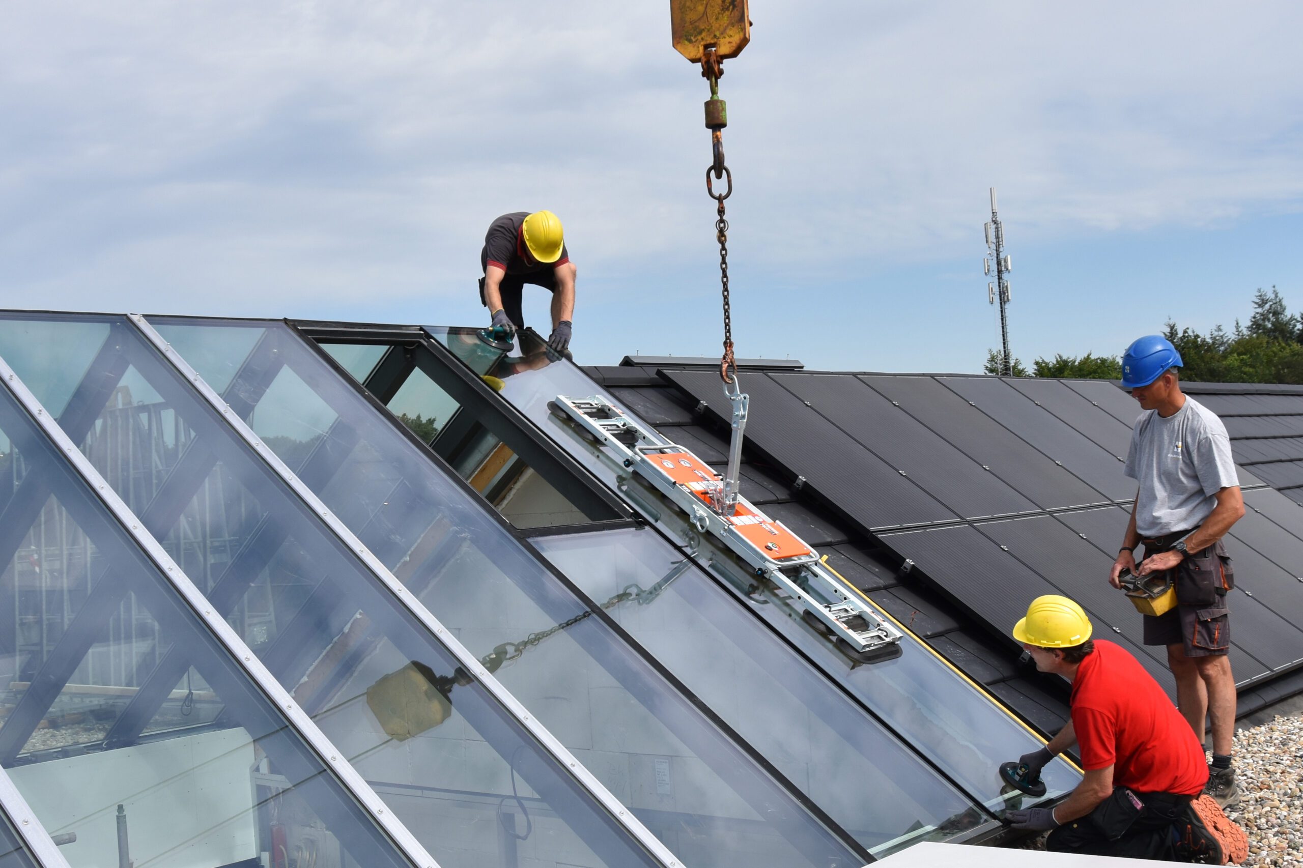 De wendbare GBL2 is uitgerust met een kort ophangoog, die het mogelijk maakt vlakglas in combinatie met een hijs- of minikraan onder overstekken te plaatsen. Bij een groter bereik weet de machine het maximale hijsvermogen van de kraan optimaal te benutten dankzij het lichtgewicht van de machine. Bij het plaatsen is het glas eenvoudig te kantelen dankzij het draai- en kantelmechanisme. Marketing manager Thomas Andriessen: ‘Dankzij de compacte afmeting kan de machine tussen een gevel en steiger worden gehesen, wat handig is bij nieuwbouw- en renovatieprojecten. Ook bij het realiseren van een serre met lange glaspanelen biedt de GBL2 uitkomst, vanwege extensies die doorbuigen van het glas tegengaan.’ De GBL2 heeft een dubbel circuit, wat de veiligheid ten goede komt en het gebruik van spanbanden overbodig maakt. Andriessen: ‘De nieuwe machine is een antwoord op de vraag vanuit de markt. Een aannemer die werkt met lange glaspanelen heeft behoefte aan een krachtige machine. Deze uitvoering is klein van stuk maar kent een grote capaciteit dankzij de extensies.’