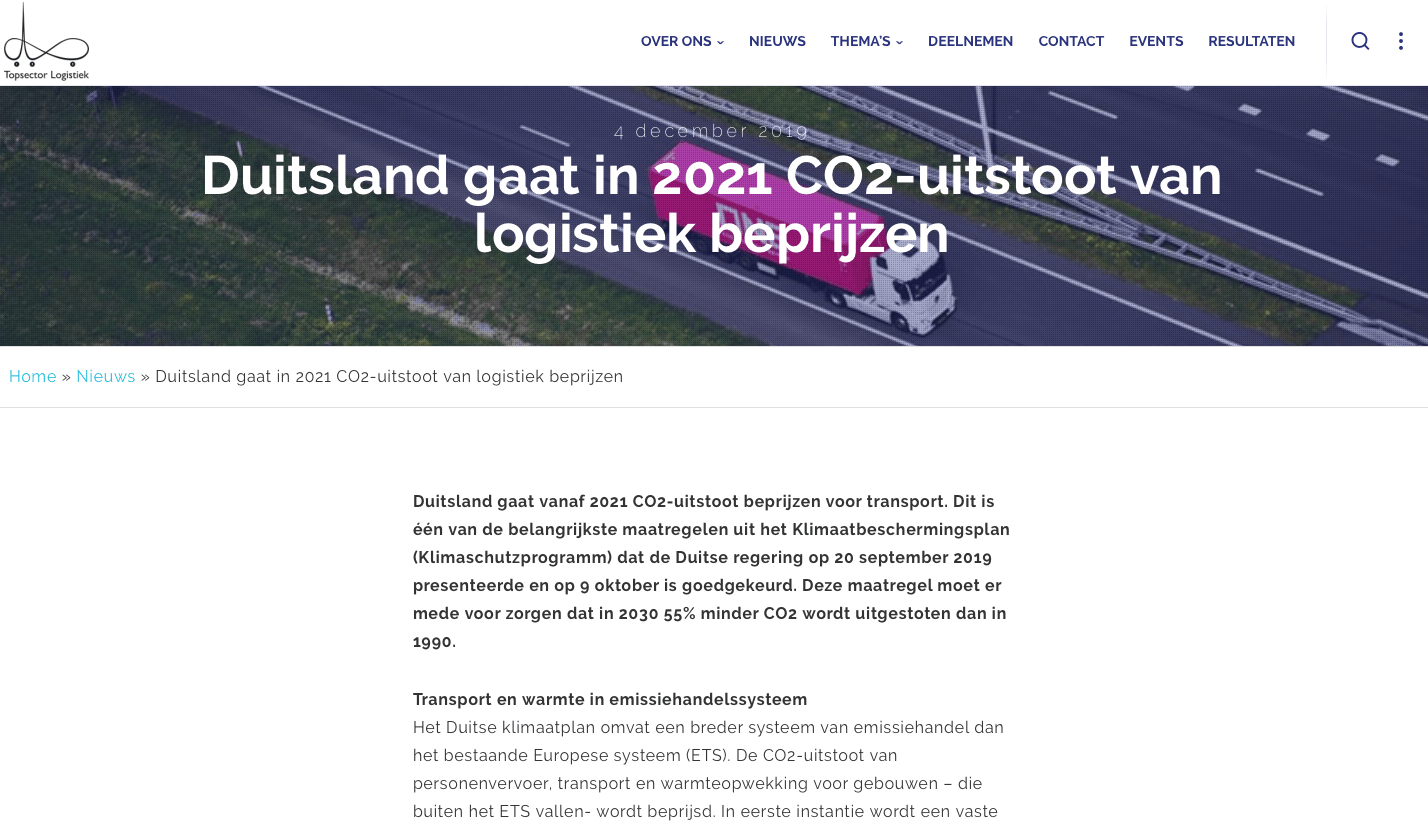 Duitsland gaat vanaf 2021 CO2-uitstoot beprijzen voor transport, zo lezen wij op Topsectorlogistiek.nl. Dit is één van de belangrijkste maatregelen uit het Klimaatbeschermingsplan (Klimaschutzprogramm). De Duitse regering presenteerde dit plan in het najaar van 2019 en aansluitend is het goedgekeurd. Deze maatregel moet er mede voor zorgen dat in 2030 55 procent minder CO2 wordt uitgestoten dan in 1990. Het plan is ook van toepassing op glastransport.