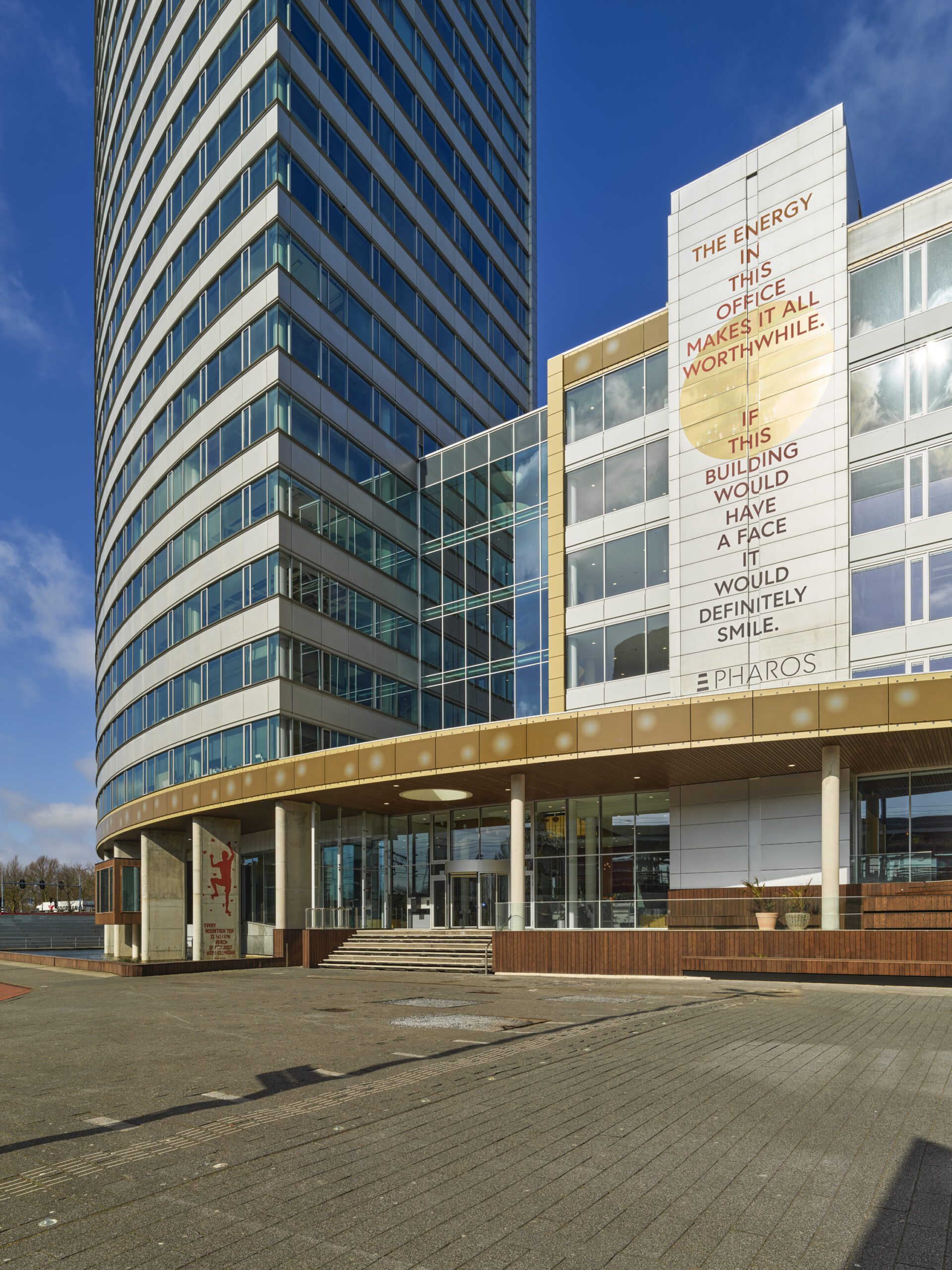 Het kantoorpand van Pharos in Hoofddorp heeft een grondige renovatie ondergaan waarbij gezondheid, duurzaamheid en innovatie voorop stonden. Een slimme glasgevel is hier één van de uitwerkingen hiervan. COARE Architecture vertaalde vier ambities in een architectonische uitwerking gebaseerd op ‘verbinden, verzachten en verrijken’. Doel was een verbindend uitnodigend gebouw te creëren dat zijn steentje bijdraagt aan de verduurzaming van de bebouwde omgeving, door energie opwekkende gevels, slimme ramen en veel groen.