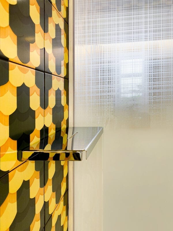 Als voorbeeld toont OmniDecor The Britannique Hotel in Napels. ‘Glas is een solide barrière, zeer dun en lichtdoorlatend: dankzij de verminderde dikte kunnen ruimtes op een discrete en niet-invasieve manier worden gescheiden en gedefinieerd. Omdat scheidingswanden in veel gevallen echter ook visueel moeten zijn, is transparant glas niet geschikt’, aldus OmniDecor over het project. ‘We bieden daarom een oplossing die creativiteit en functionaliteit combineert. Producten die zijn gemaakt om ruimtes fysiek en visueel van elkaar te scheiden zonder noodzakelijkerwijs in te leveren op licht. Dat kan door het glas te personaliseren.’