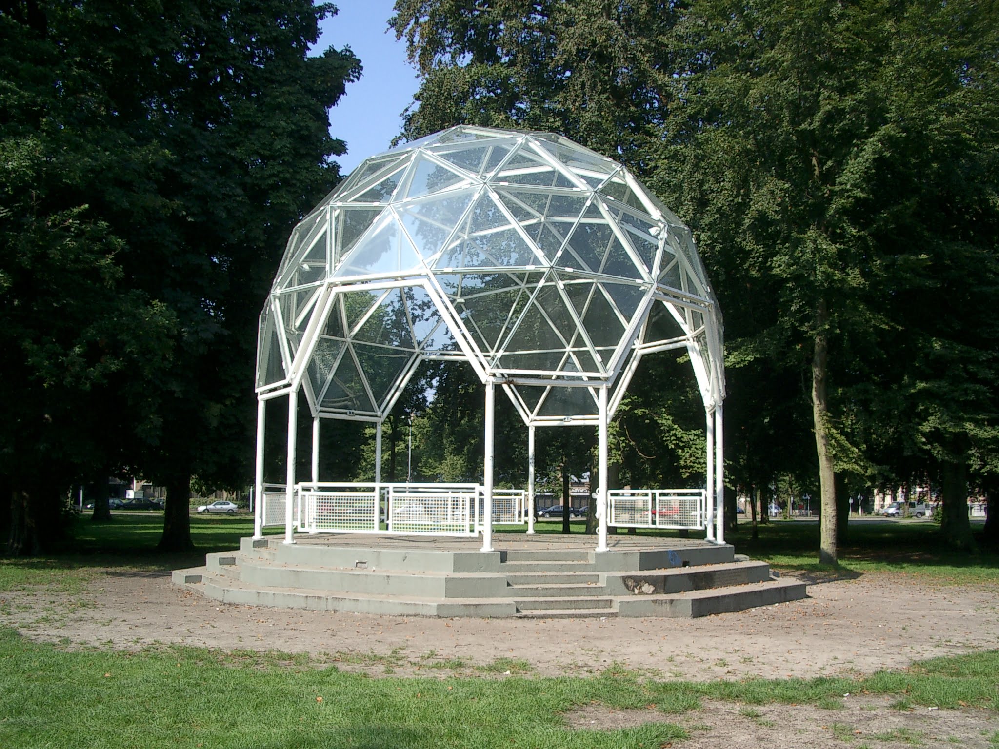 De muziekkoepel van architect Wiek Röling dateert van 1984. De glasbevestiging is een combinatie van klemplaten en kitverbindingen.