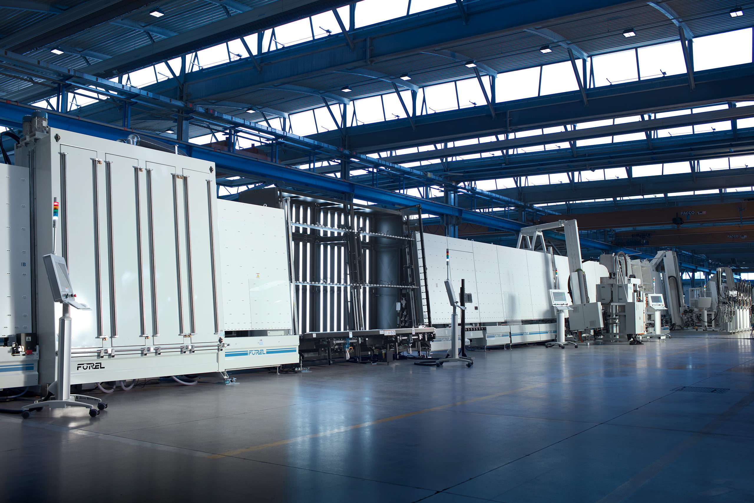 Nog een primeur van Forel op de Glasstec is de presentatie van het volledige assortiment aan oplossingen voor verticale randafwerking. In Düsseldorf zijn de Art. EM-kantenmachine, art. DM Drilling Freesmachine en de Art. VW-wasmachine, te zien. Molucchi: ‘Deze combinatie van machinemodules kan een veelvoud aan verwerkingstaken uitvoeren, waaronder kantenbewerking, slijpen, polijsten, frezen en boren voor zowel monolithisch als gelaagd glas. Drie in-line machines met onafhankelijke oplossingen die tegelijkertijd op verschillende glasplaten kunnen werken, eenvoudig beheerd vanuit onze software. Je begrijpt, dat verhoogt de productiviteit en kwaliteit enorm.’
