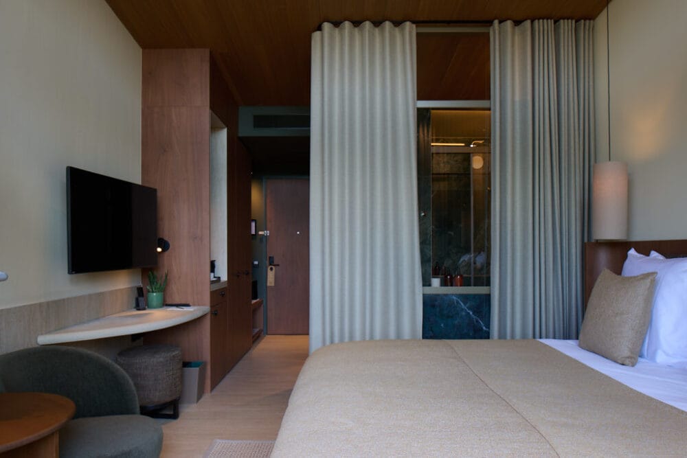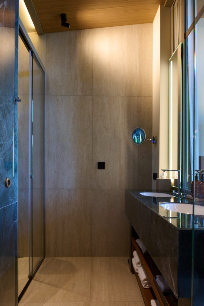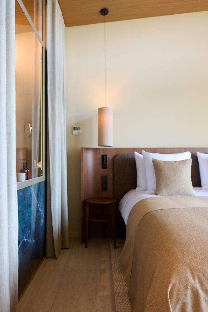 De kamers zijn ontworpen met natuurlijke materialen en warme kleuren. De keuze voor douchewanden van extra helder AGC Luxclear ligt hier in het verlengde van. Luxclear is transparant glas met aan één zijde een onzichtbare coating dat initieel is ontworpen voor doucheruimten, maar dat ook buiten kan worden toegepast. De coating is met name ontwikkeld om het glasoppervlak te beschermen en het verouderingsproces drastisch te vertragen wanneer het in contact komt met water. Hierdoor ontstaat er geen witte aanslag, een probleem waarmee veel douchecabines te maken hebben.